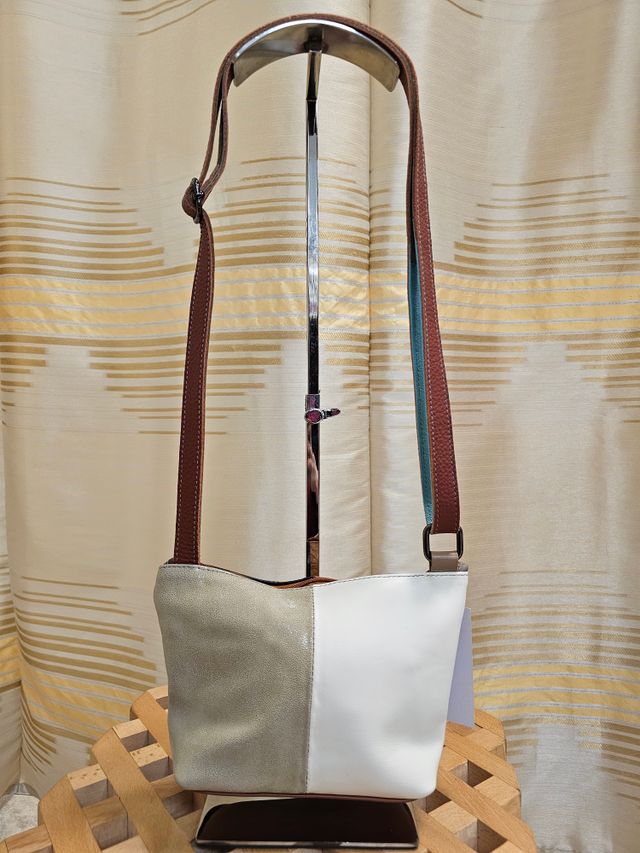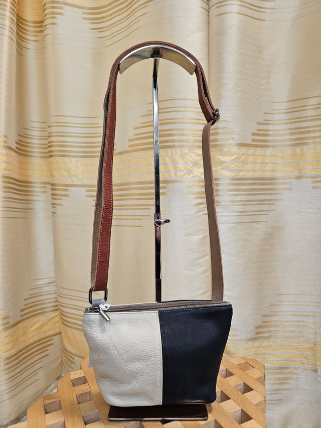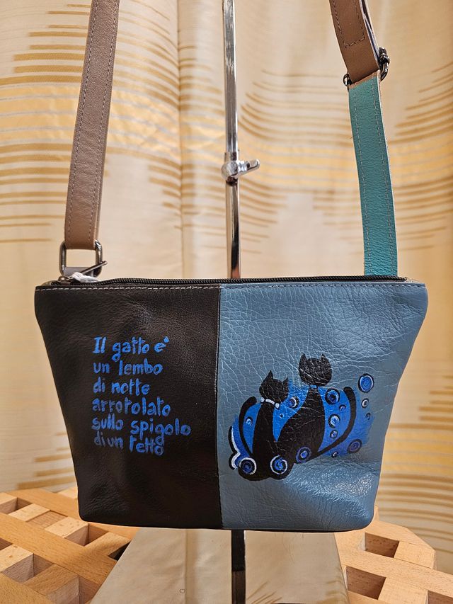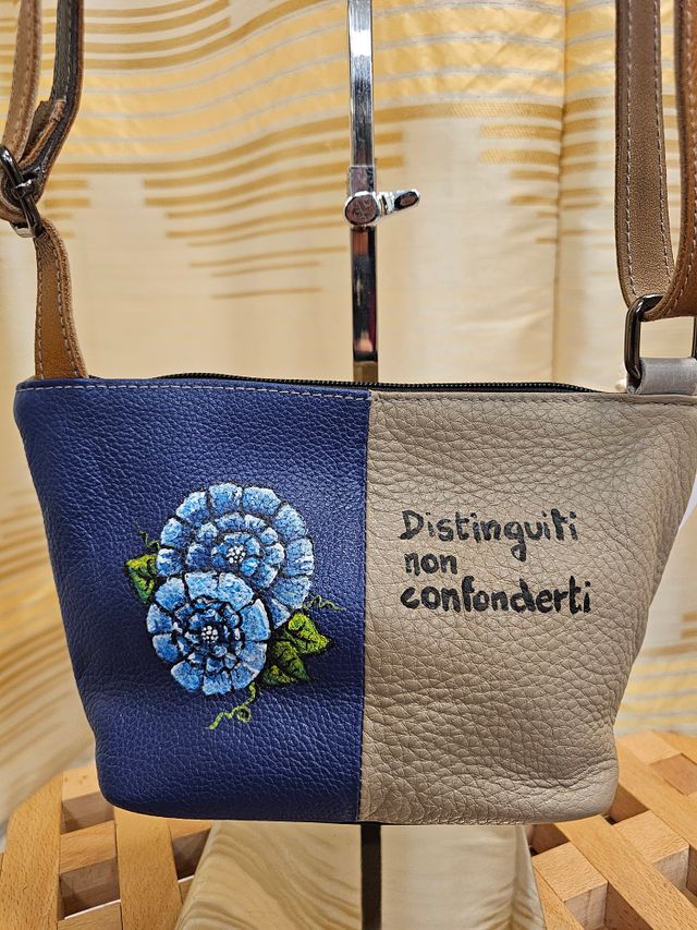 Borsetta a tracolla regolabile in vera pelle multicolor dipinta a mano. Pezzo unico.
