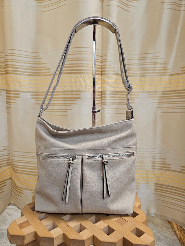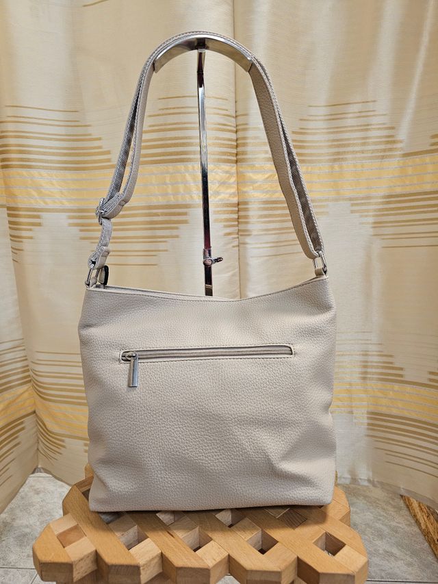 Borsa a tracolla regolabile in ecopelle panna. Misure: 30x37 cm