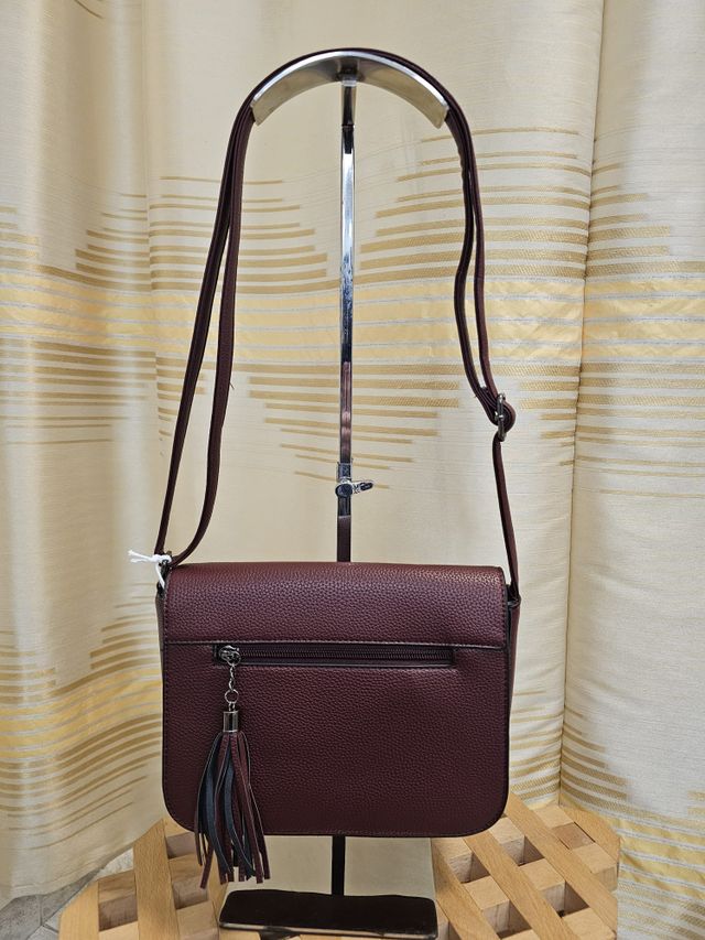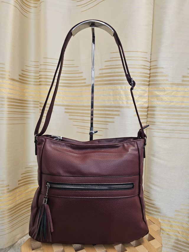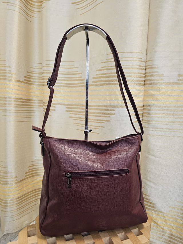 Borsa a tracolla regolabile in ecopelle bordeaux.