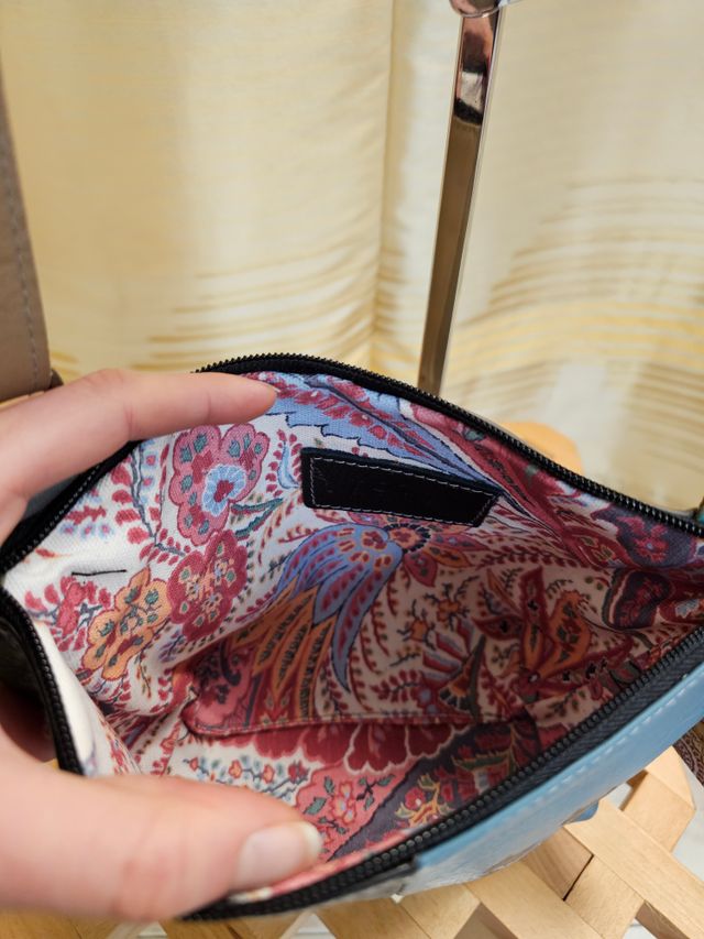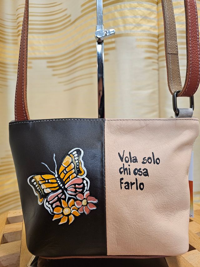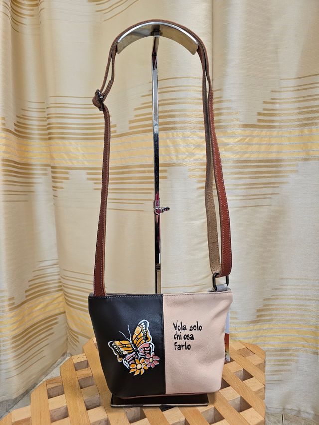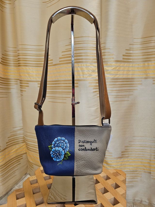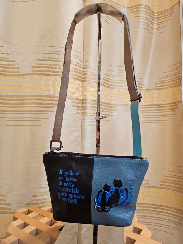 Borsetta a tracolla regolabile in vera pelle multicolor dipinta a mano. Pezzo unico. Misure: 16x24 cm
