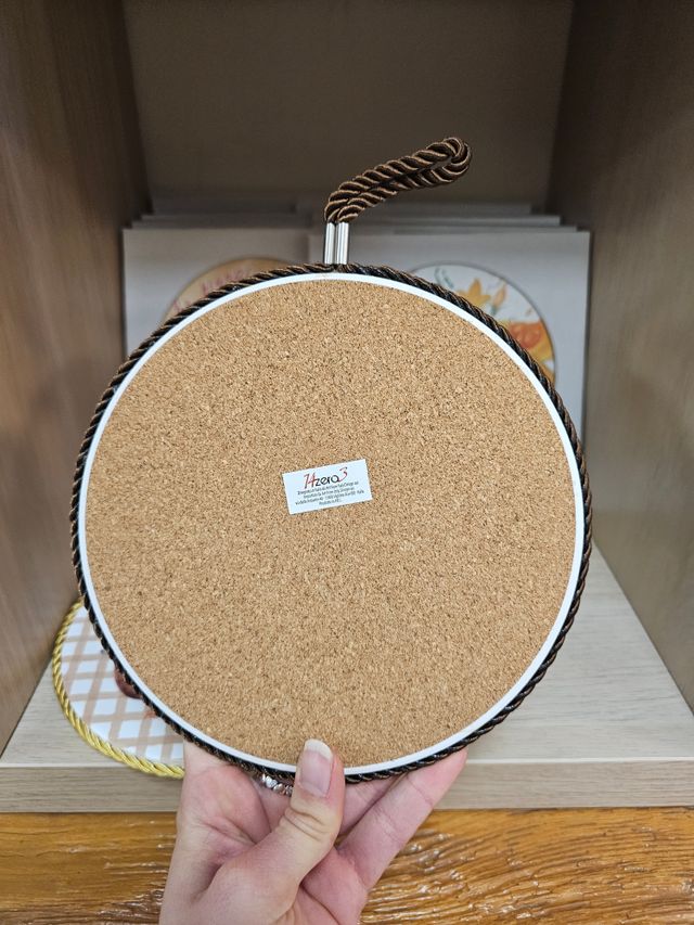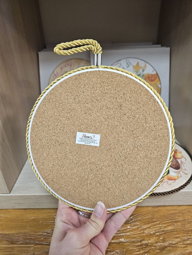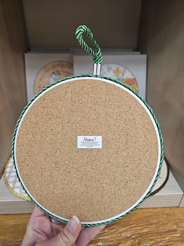 Sottopentola da appendere o da appoggiare in ceramica con base in sughero personalizzabile