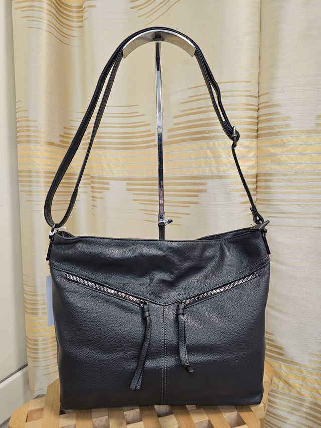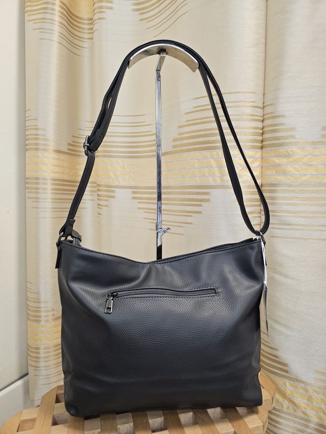 Borsa a tracolla regolabile in ecopelle grigio scuro.