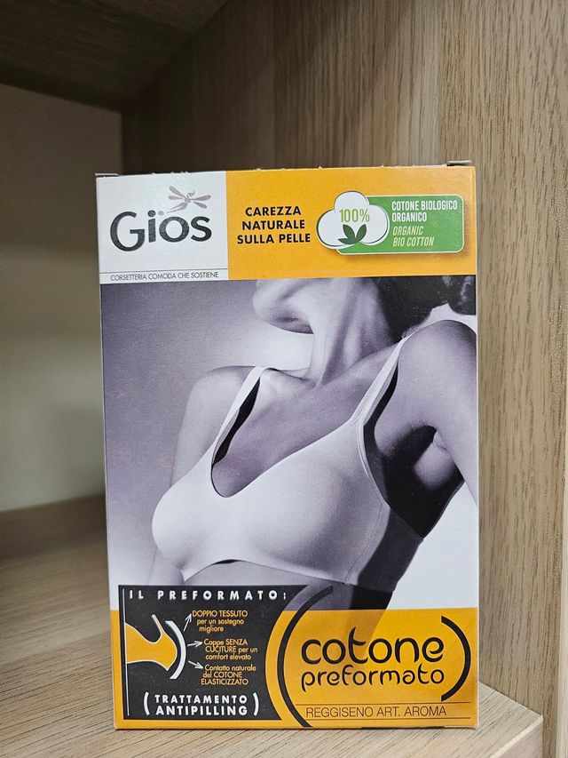 Reggiseno con coppe in doppio tessuto di cotone elasticizzato e preformate (senza cuciture).