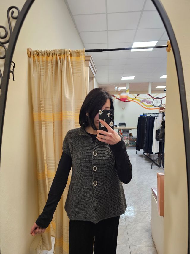Gilet in maglia a maniche corte con bottoni color fango.
