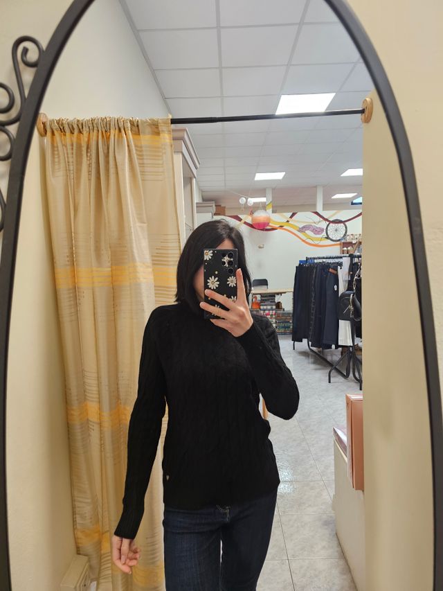 Maglione a girocollo nero con trecce. Taglia unica. Composizione: 50% viscosa, 40% Poliammide, 10% elastan