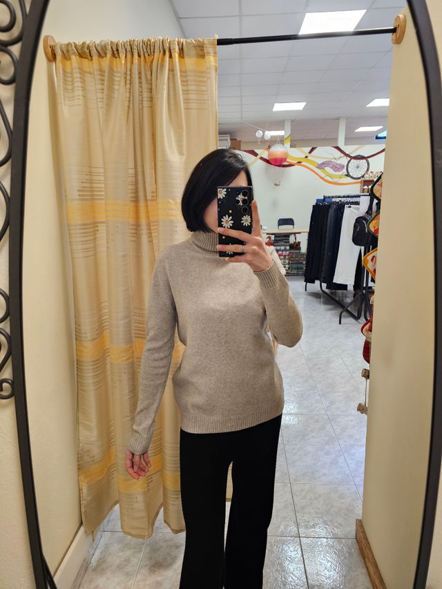 Maglione dolcevita liscio color coccio. Taglia L/XL Composizione: 40% Poliammide, 20% viscosa,, 10% poliestere